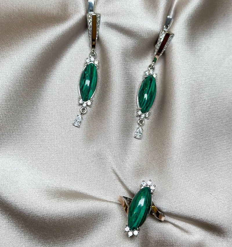 A set of silver with gold inserts, malachite and zircon