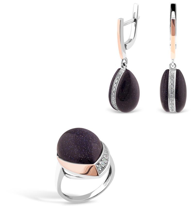 Сет из серебра с золотыми вставками с улекситом и цирконом