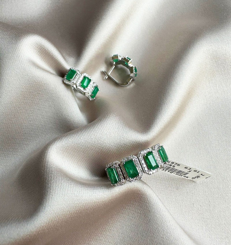 Сет из белого золота с бриллиантом и изумрудом 3.63ct