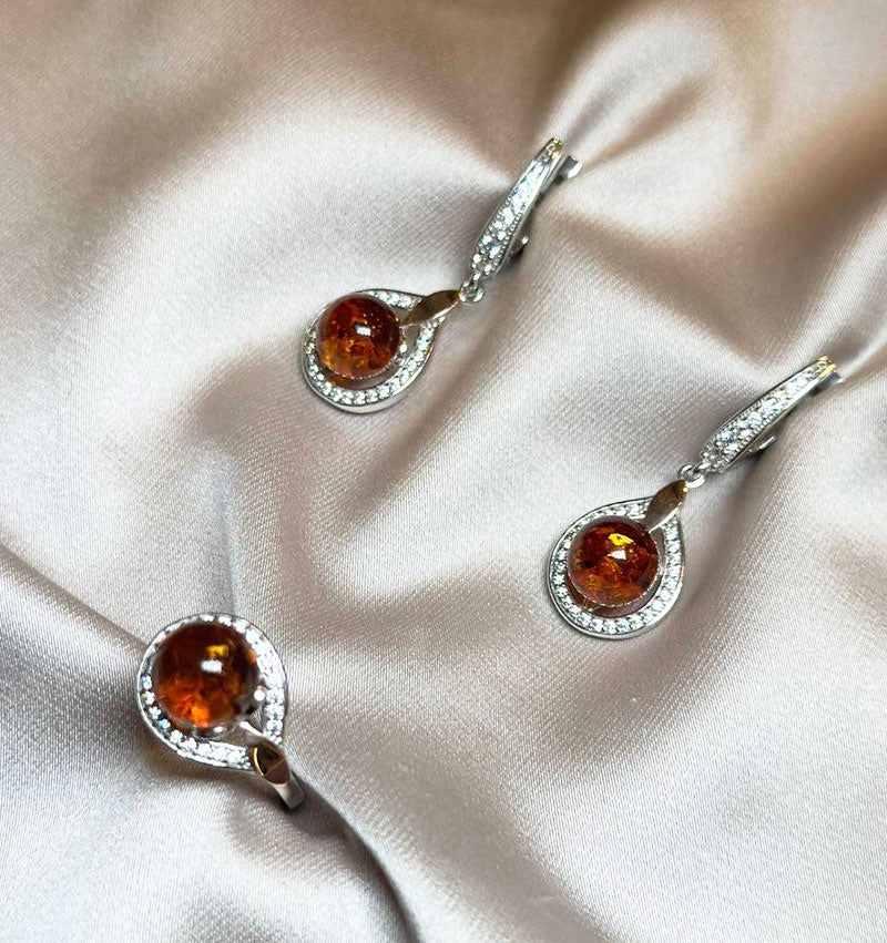 Сет из серебра с золотыми вставками с цирконом и янтарём