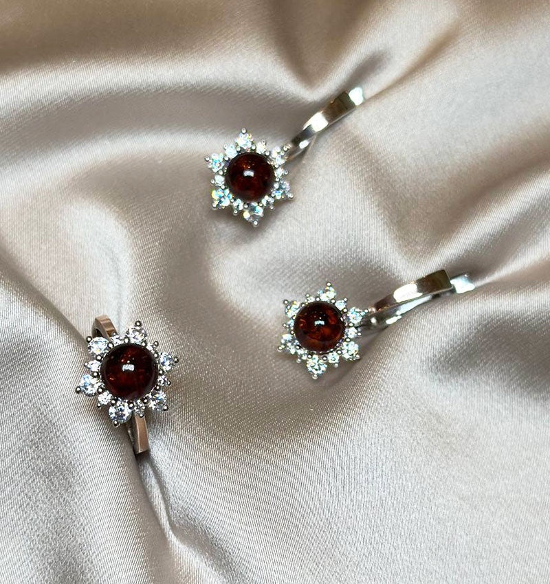 Сет из серебра с золотыми вставками с цирконом и янтарём