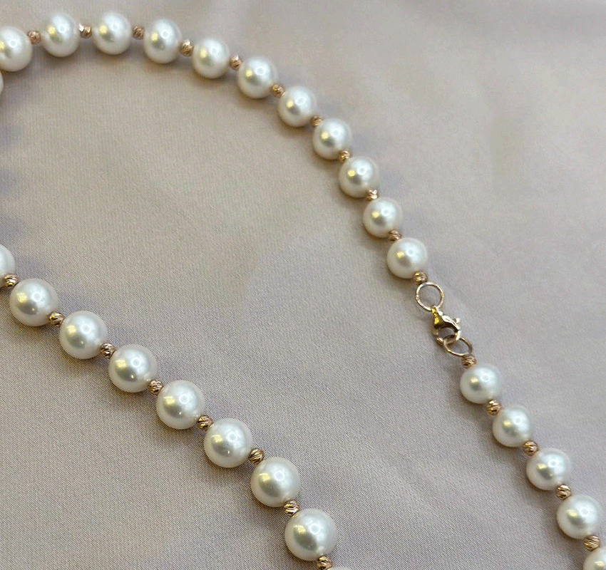Lanț din aur roz cu perle