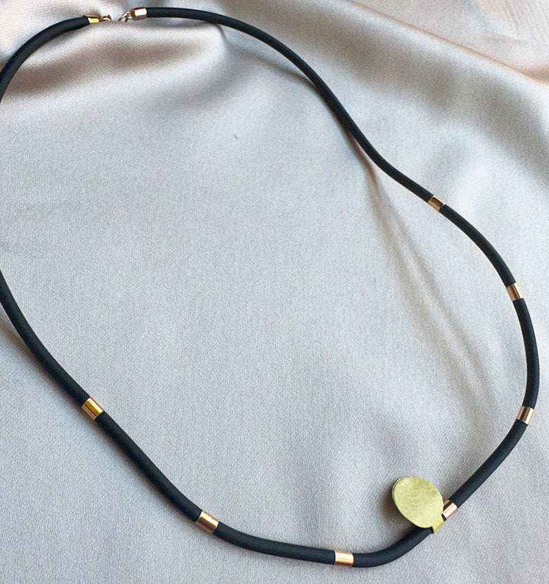 Colier din aur roz cu cauciuc și piele