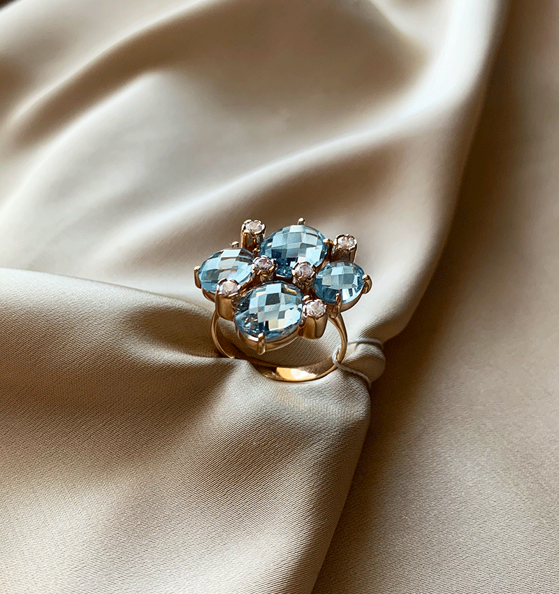 Inel din aur roz cu zirconiu și topaz