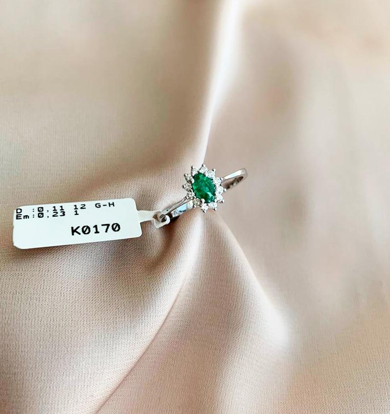 Inel din aur alb cu diamant și smarald de 0,34 ct