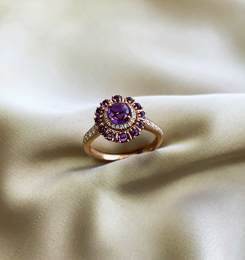 Inel din aur roz cu ametist și diamant de 0.23ct