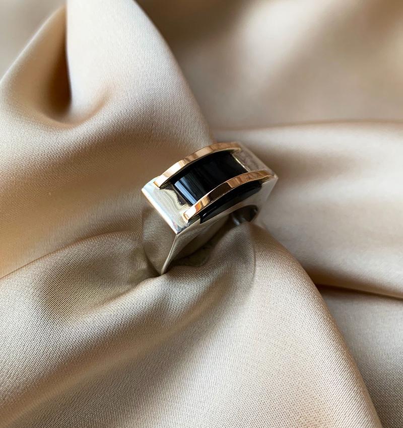 Inel din argint cu inserții de aur, zirconiu și perle