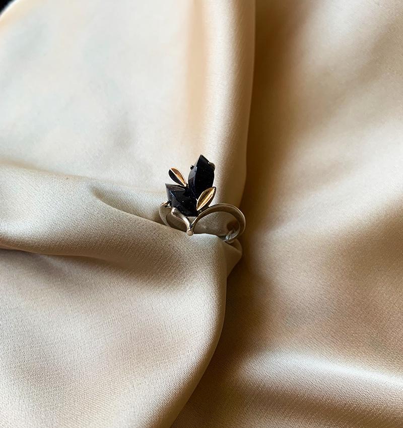 Inel din argint cu inserții de aur și zirconiu