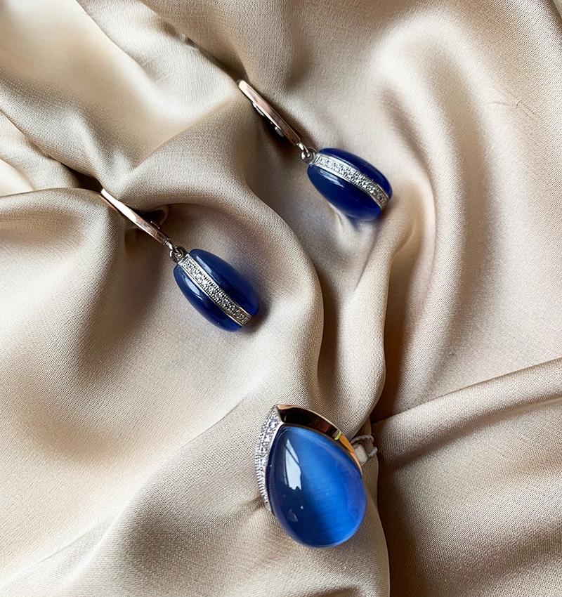 Un set de argint cu inserții de aur cu ulexit și zirconiu